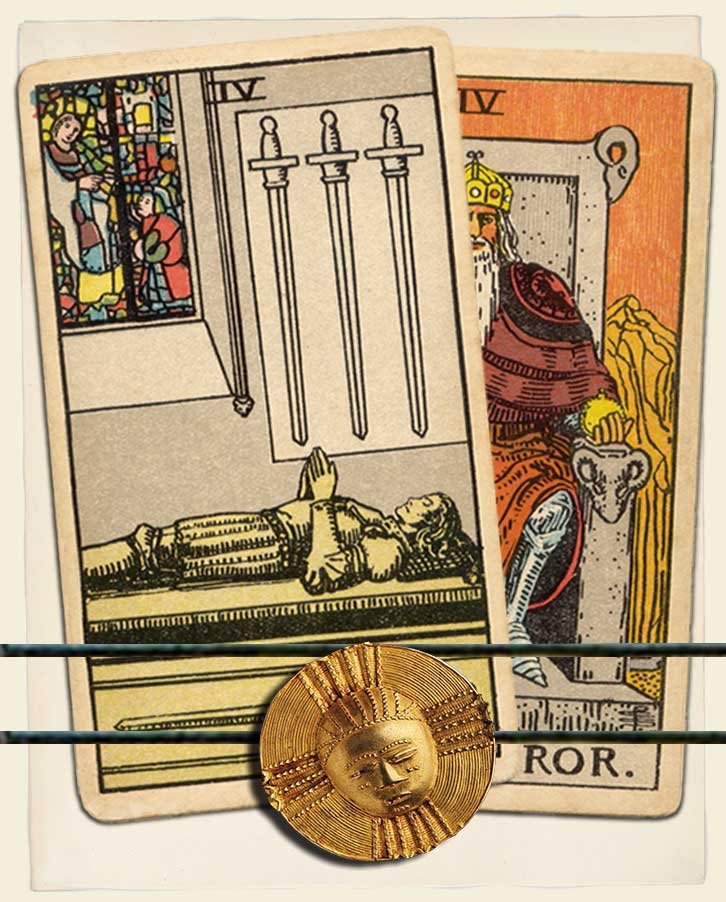 Four of swords and The Emperor tarot combination gives you a peek at your actual state and close future, which is influenced by the arcane tarot forces of (A) recuperation and (B) authority. How does this card combination affect you in practice? Being fully present can be challenging for you right now. This is because you need to take the opportunity to rest and recover before starting on your responsibilities. Before the cycle of always running on empty continues, you should take that spa day. Then you will be ready to show up and take charge.