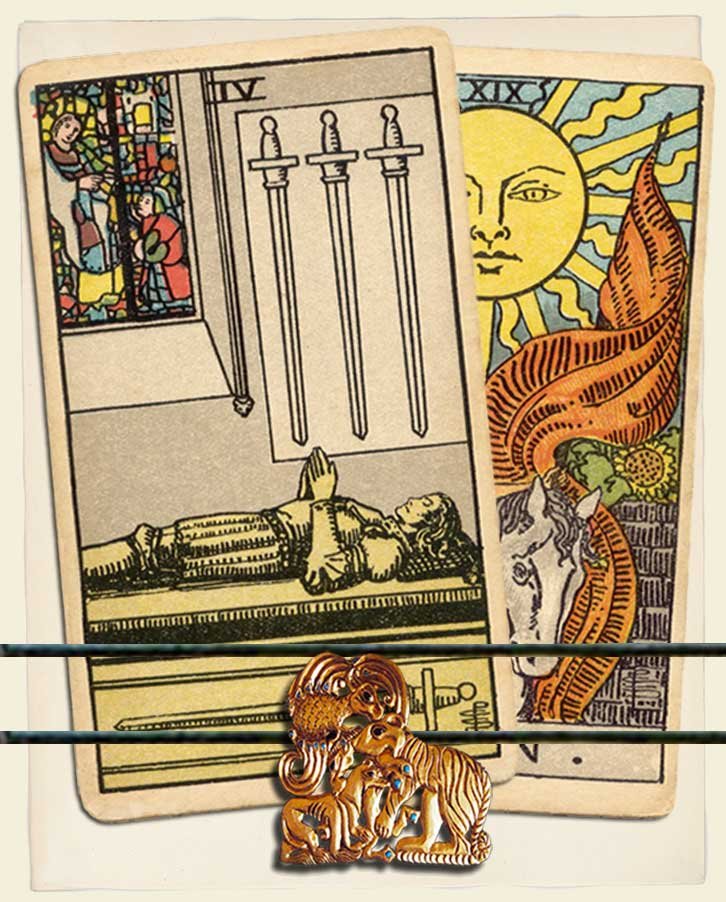 Four of swords and The Sun tarot combination gives you a hint about a significant event in your future, which is influenced by the forces of Contemplation and Positivity. The experience you have been considering is absolutely the right path for you to take. Go ahead: take the chance, but be sure to go into the experience with the full force of your efforts. Don’t continue to mull it over – step out today, and embrace your well-deserved reward.
