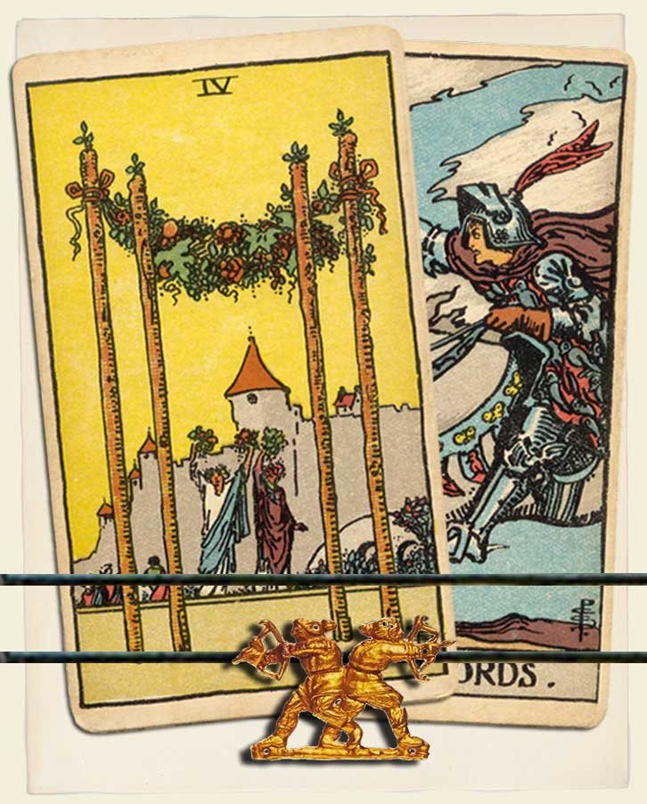 Hey, guys! Today we’re talking about the Four of wands and Knight of swords combination in love and relationships. This combo is considered a great sign for your future. It gives an insight into a major event that will arise from the combined effect of homecoming (arcane effect of Four of wands) and daring (effect of Knight of swords). Basically, it’s time to rejuvenate your spirit with love and warmth.