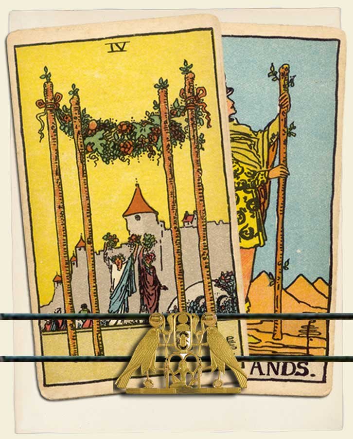 Four of Wands and Page of Wands combo interpretation