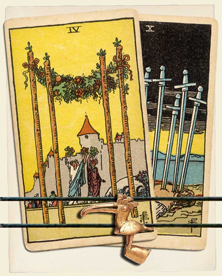 Four of Wands and Ten of Swords combo interpretation