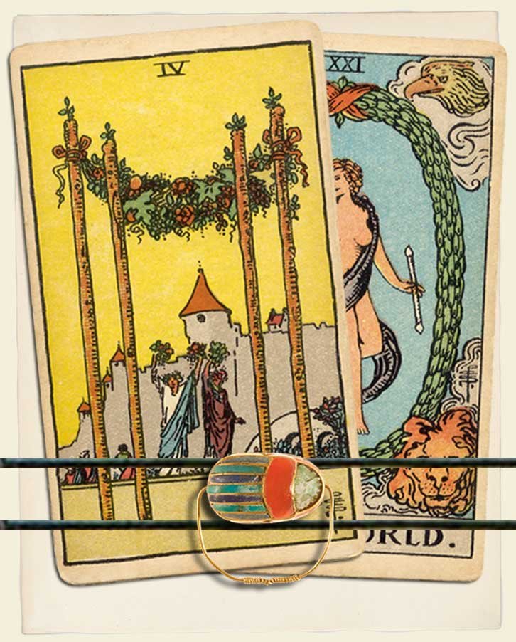 Four of wands and The World combination indicates that two mystic forces: 1) Home and 2) Achievement are influencing you at the moment. That which is happening under your roof feels good. When our relationships with others and ourselves are stable and fulfilling, other aspects of our life will mirror this. Celebrate all that you have created and nurtured for yourself and honor the sense of wholeness you actively work for in your life. Your efforts have paid off, and more good is to follow. Now is a time for dinner parties, solo nights with candles and a book, and time with your tribe.