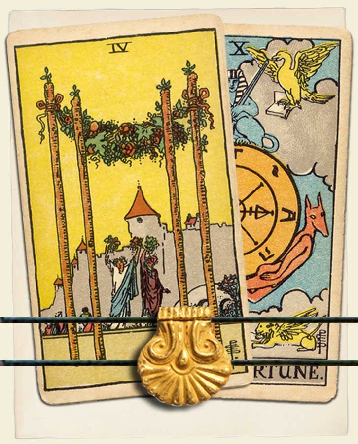 Four of wands and Wheel of Fortune combination gives you a better insight into a major event in your future, which is influenced by the tarot forces of (I) Celebration (from Four of wands) and (II) Destiny (from Wheel of Fortune). What’s the advice of this pair? The Four of Wands represents coming together after a difficult time. It’s an energy that encourages people to party hardy. This card indicates that there will be plenty for everyone to celebrate. The Wheel of Fortune indicates that whatever brought these people together won’t last long. Something important will have to end so something new can begin. Be careful not to get carried away with yourself or others celebrating too much, though. Don’t burn any bridges you might need later on.
