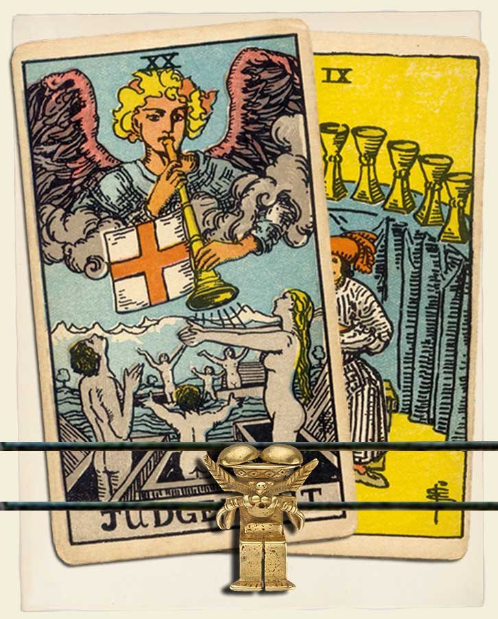 My dear friends, the combination of Judgement and Nine of Cups is a favorable sign for love and relationships. This pair represents two arcane forces: Awakening and Satisfaction that currently guide your decisions in matters of the heart.