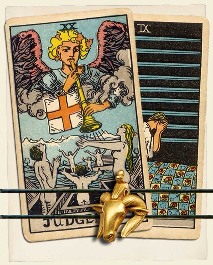 Judgement clarified by Nine of swords means that two arcane forces: 1) JUDGEMENT and 2) NEGATIVITY are affecting you today. When this pair appears, you can expect to have to deal with anxiety due to a period or moment of reflection that the person may be facing or about to face. There may be some awakened trauma during this time as well if this match appears. You can expect the person to have a sense or feeling of hopelessness as well.