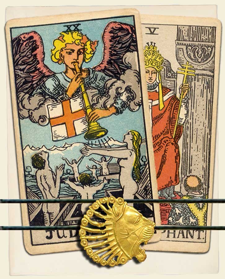 Judgement and The Hierophant tarot combination gives a hint that two tarot influences: 1) Purpose and 2) Conformity have influence on you at this moment. You have not yet been able to see how the new rules imposed at work will improve the outcome for your team. Those rules may seem arbitrary, but trust fate and you will soon begin to realize why this method has been requested. You and your team will draw closer together as you navigate this new course together.