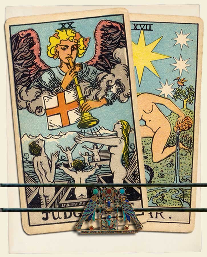 Judgement and The Star combination means that arcane tarot forces: (1) JUDGEMENT (Judgement) and (2) HOPE (influence of The Star) are affecting you today. A long awaited decision is made, and justice is done when you see Judgement, and with the Star, this justice brings with it new hope, and a sense of direction. This can be a major turning point in your life if you let it be. What was once unfairly stacked is now set right. You can look out now with a sense of purpose and direction as judgement rains down healing. With this new frame-of-mind, you can do almost anything. Just make sure you pay this fairness forward. It is best to keep Judgement on your side.