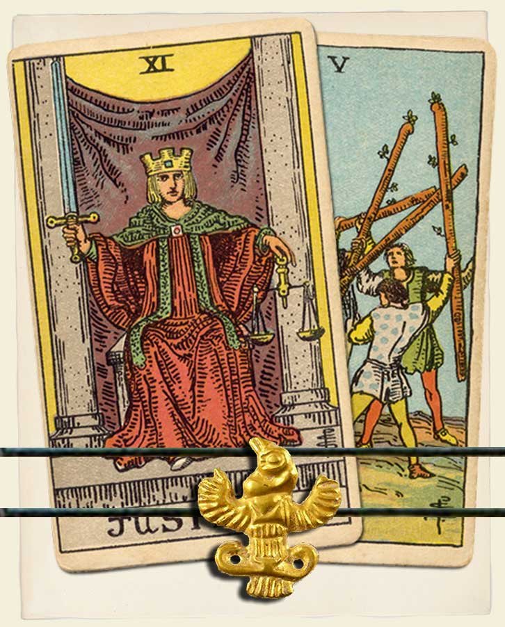 Justice and Five of Wands combo interpretation