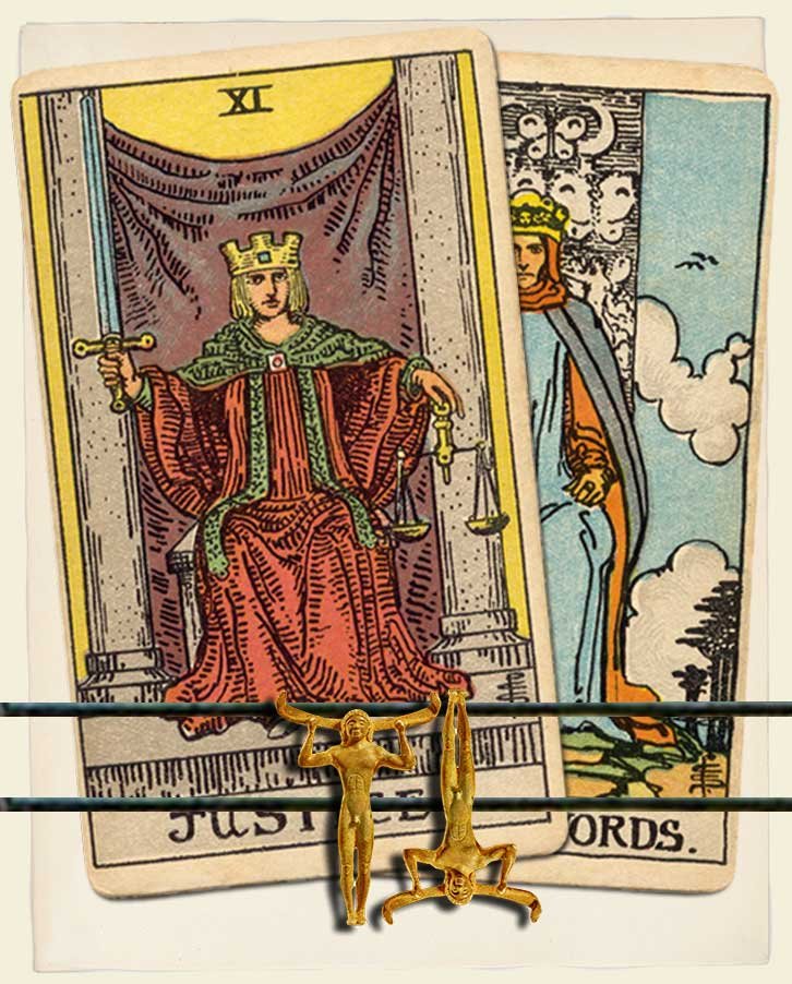 Justice and King of swords combination is a sign that two forces: 1) Justice and 2) Morality are steering you into another direction today. What’s the advice of this pair? The presence of the Justice card indicates that there may be an injustice in your life, or perhaps someone has wronged you. This can create a feeling of being morally compromised, because it seems unfair to punish someone for something they didn’t do. The presence of the King of Swords indicates that you have good judgment and discernment to make sure what goes on around you remains fair. Use these qualities to set things right.
