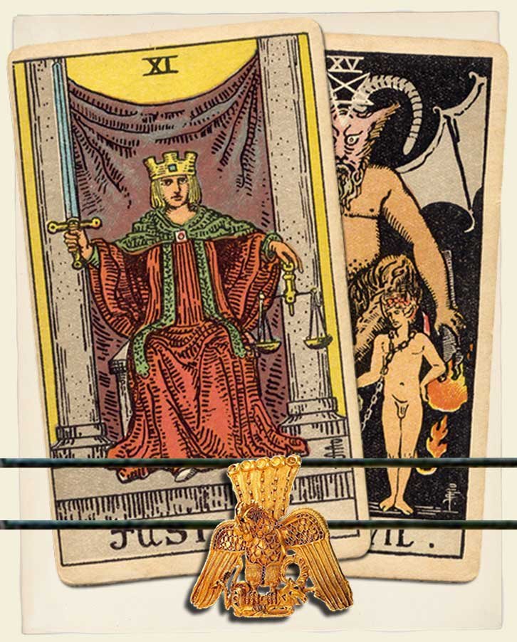 Justice and The Devil tarot combination is a sign that mystic tarot forces: 1) Justice and 2) Sexuality govern your life decisions today. Most tarot readers would consider this a warning call about how you balance your physical needs with the rest of your well-being. It is possible to have too much of a good thing, and a life lived in pursuit of hedonistic luxuries can easily become one where there’s a danger of excess. Lust, gluttony, pride, and the like must be balanced with spiritual and social consideration. Take heed of this warning to treat yourself and others with the respect you’re worthy of.