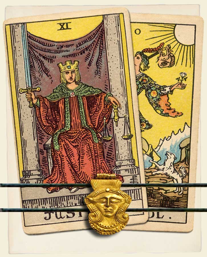 So what does all this mean when these two cards are paired together? Well, it suggests that your future in love is unpredictable but ultimately guided by justice (or karma) and an openness to change represented by The Fool.