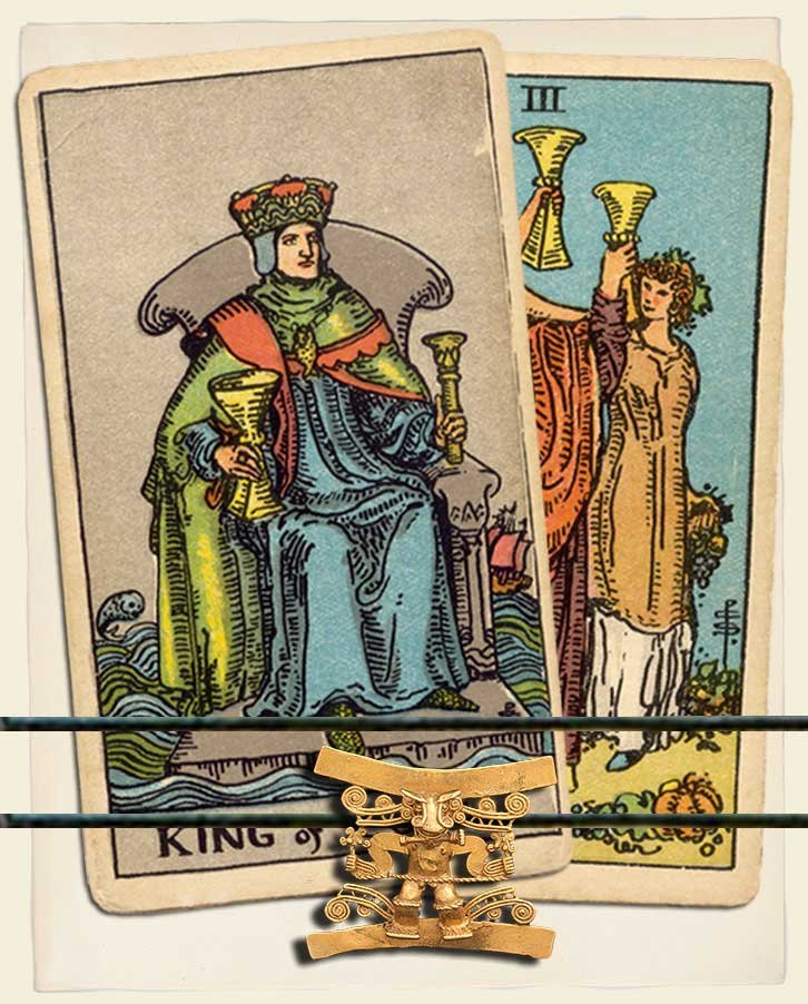 Well, well, well my dear, it seems like you have stumbled upon a magnificent combination of tarot cards for love and relationships. The King of cups and Three of cups signify the balance between head and heart along with celebration in your life decisions today.