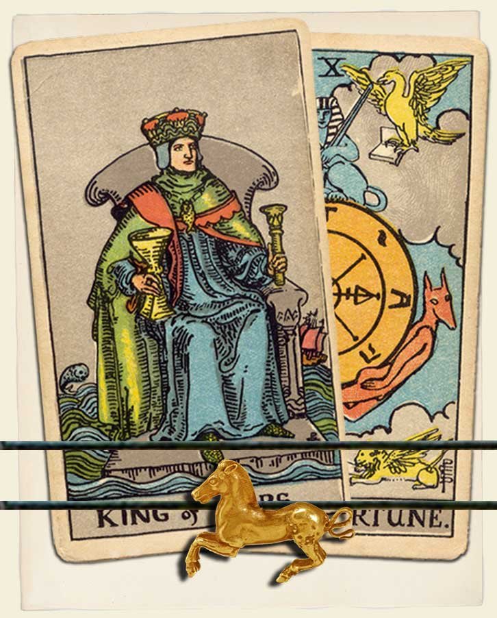 My dear, let me tell you that the King of cups and Wheel of Fortune combination is an excellent omen for any love affair. These two cards suggest a significant event in your future, guided by both an advisor and good fortune. It’s time to throw caution to the wind and trust fate.