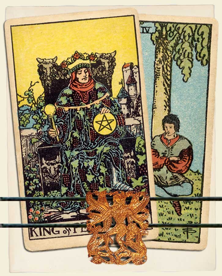 King of pentacles and Four of cups together gives a clearer perception about your distant and barely discernible future. It is influenced by the tarot forces of (I) ABUNDANCE (from King of pentacles) and (II) INDIFFERENCE. In other words, you could find yourself frequently contemplating about wealth and prosperity in your future. The cards show that you will obtain the abundance that you dream of but with that wealth you will become distant and disconnected. You may feel that you have to isolate yourself to retain the resources you’ve gathered.