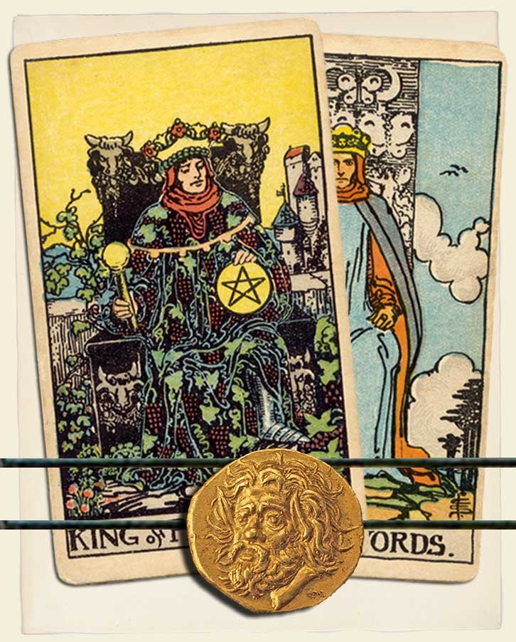 King of pentacles and King of swords combination means that arcane tarot forces: A) Leadership (King of pentacles) and B) Authority (King of swords) together are exerting influence on you. Most tarot readers would consider this a sign that you will soon find confidence. A new power will come to influence your life—but not the kind you might think. No longer will you find yourself under the oppressive yoke of an unforgiving master. Soon enough, you will dance to the beat of no one else’s drum but your own.