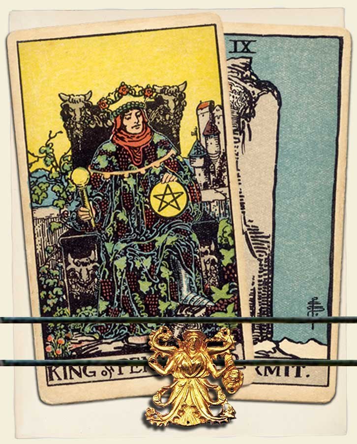 King of pentacles and The Hermit tarot combination gives a sign that tarot influences: 1) Abundance (influence of King of pentacles) and 2) Withdrawal (influence of The Hermit) have influence on you at this moment. You feel that someone is tying your hands and playing you like a puppet. You want to get out of his/her domain and live your own life freely. If you look at the other side of the glass, I see that this person actually wants to protect you and is doing his/her best to minimize the damage based on his/her experiences. Give some time, and soon, the truth will come out, and you will witness it.