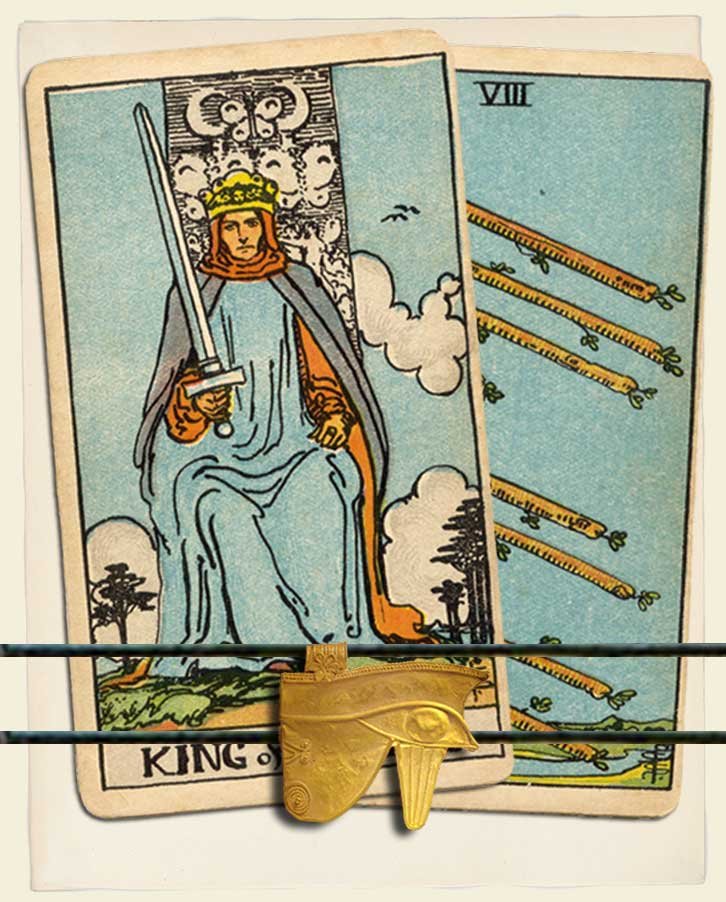 King of swords and Eight of wands tarot combination gives you a hint about an outcome in your future, which is directed by the guiding influences of (A) Mental Clarity and (B) Movement. You refuse to see things for how they used to be. You were once stagnant, unable to put one foot in front of the other, and now you are gaining speed and looking ahead in an energetic way. Use your clear mind to capture clear dreams that have the ability to all come true.