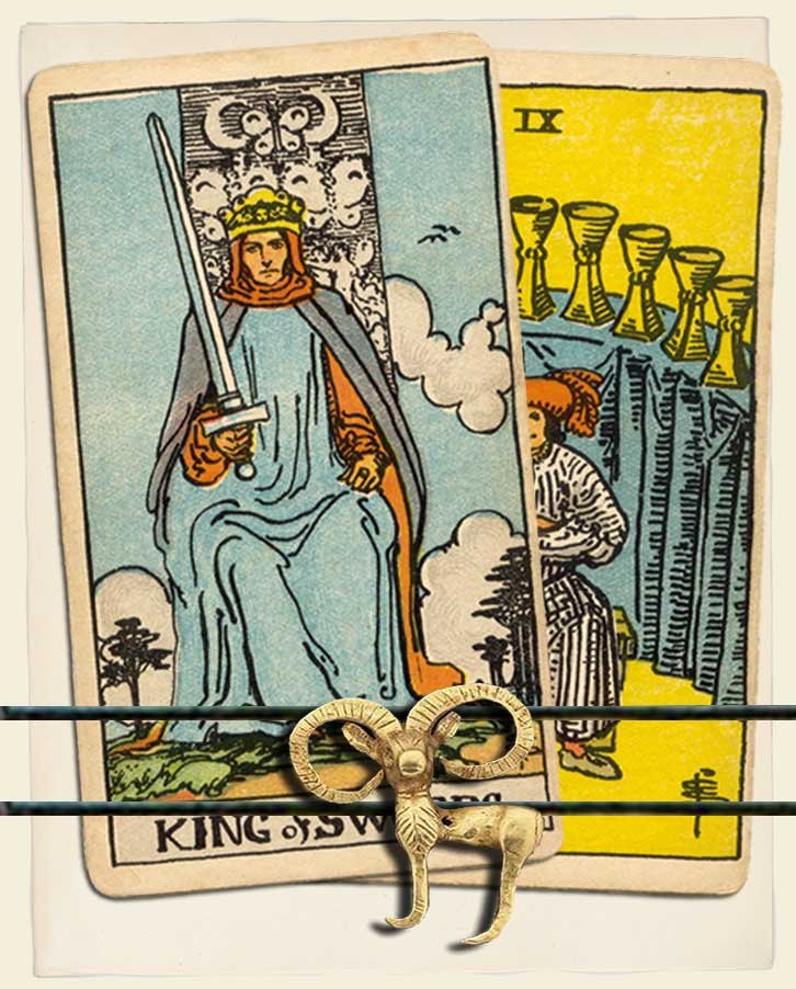 The combination of the King of Swords and Nine of Cups is a powerful sign for love and relationships. It represents a balance between reason and recognition, indicating that decisions made in this area will be guided by both intellect and emotions.