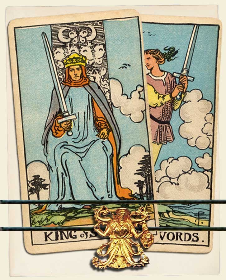 King of swords and Page of swords combination gives a clearer perception about an outcome in your future. It will come to pass from the combined effect of (A) AUTHORITY (effect of King of swords) and (B) NEW IDEAS (effect of Page of swords). In other words, it means you will soon find yourself rejuvenated. Lately, you’ve been laboring under the oppressive yoke of a cruel master. Well, if this reading is to be trusted, soon enough, their power will be diminishing. Sure, it might be a little uncomfortable finding yourself with so much freedom for a while—but, soon enough, a whole new world of possibility will open up before you.