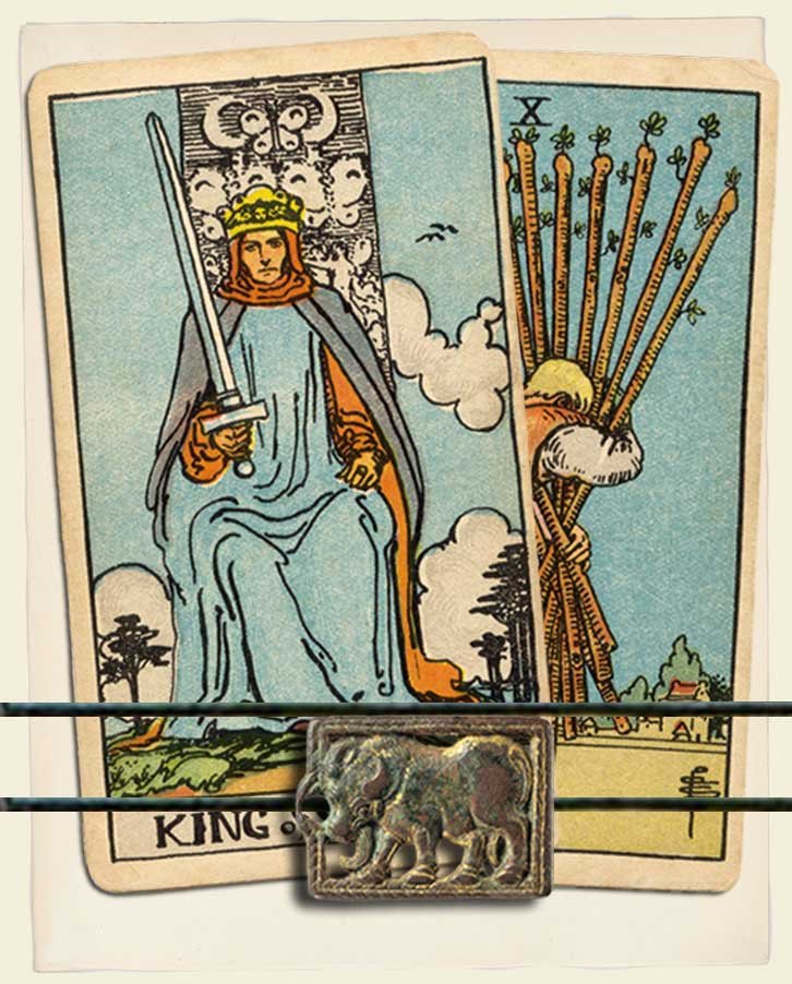 The combination of the King of Swords and Ten of Wands in regards to love and relationships is a sign of uncertainty. While the King of Swords represents truthfulness and reliability, the Ten of Wands indicates a sense of obligation or responsibility for something that may have been put off for too long.