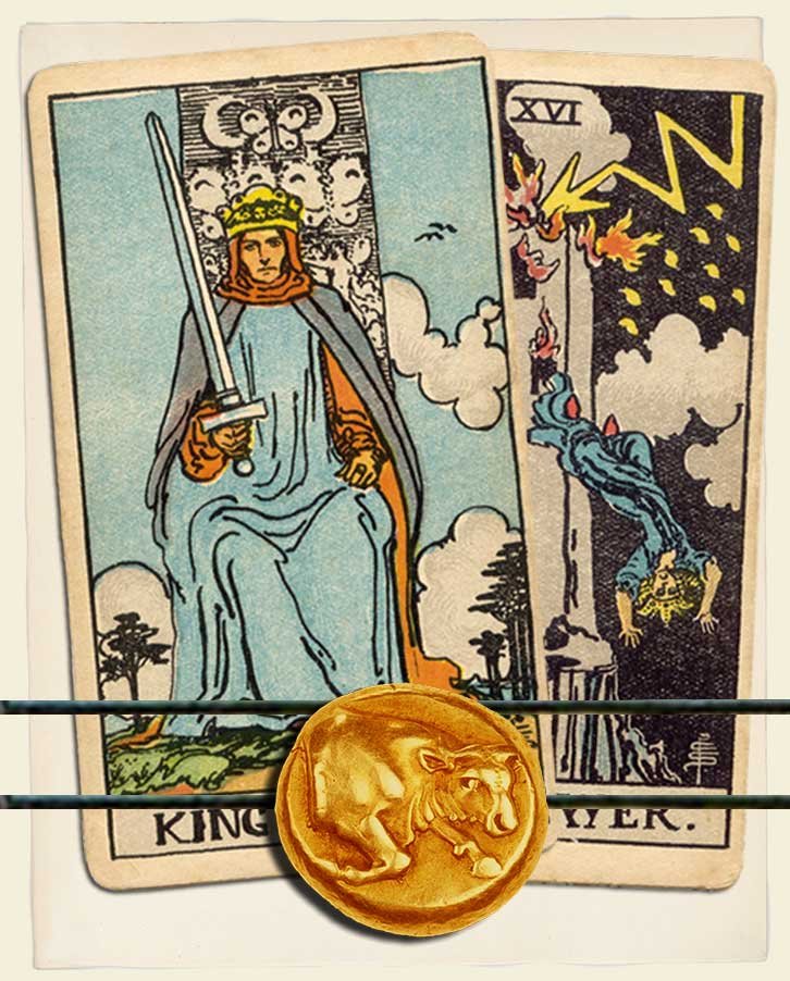 King of swords and The Tower tarot combination means that tarot influences: 1) Discipline and 2) Sudden Change drive your choices at this moment. In essence, it might be that you’re being too harsh on yourself. Discipline is good, but when it turns into dictatorship, then your life can become a real hell. As human beings we can adapt to anything, so when we become our own jailers, we risk getting inside a lifelong prison without even realizing it. If you don’t cut you some slack, the cards say that something bad might happen which will force you to change the course of your existence. Better play ahead and avoid Karma hitting you in the head!