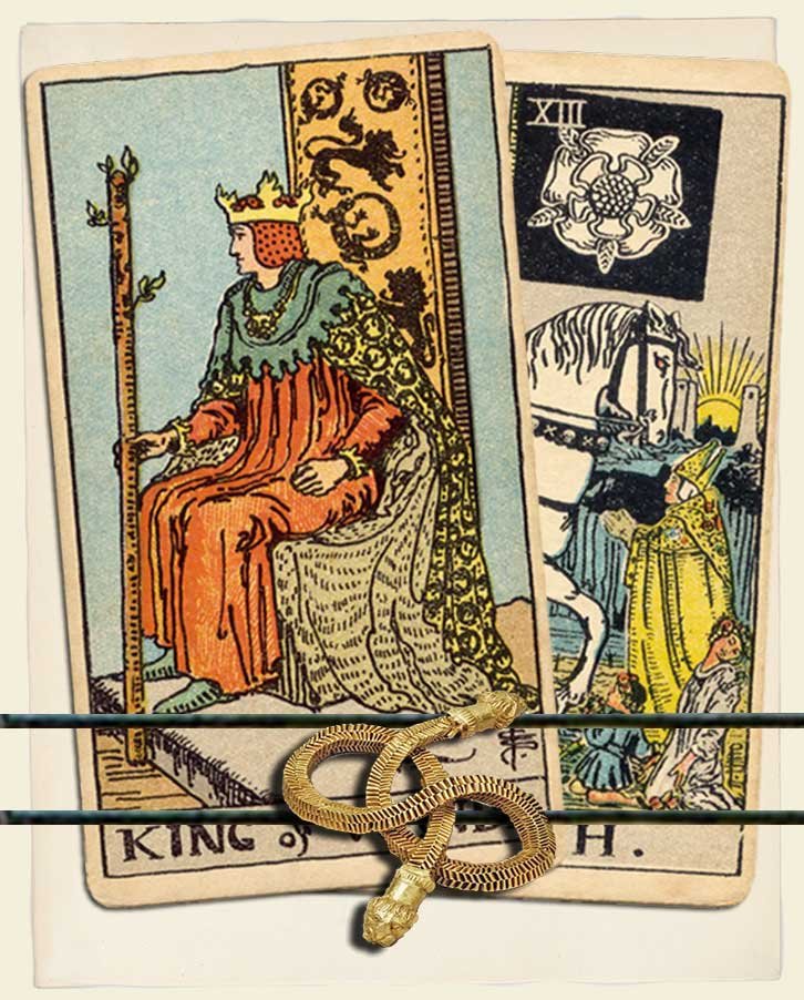 Well, darling, let me tell you that the King of Wands and Death combination in terms of love and relationships is a rather intriguing one. It signals a time for change and transition, my dear. And as we all know, change can be both exhilarating and terrifying.