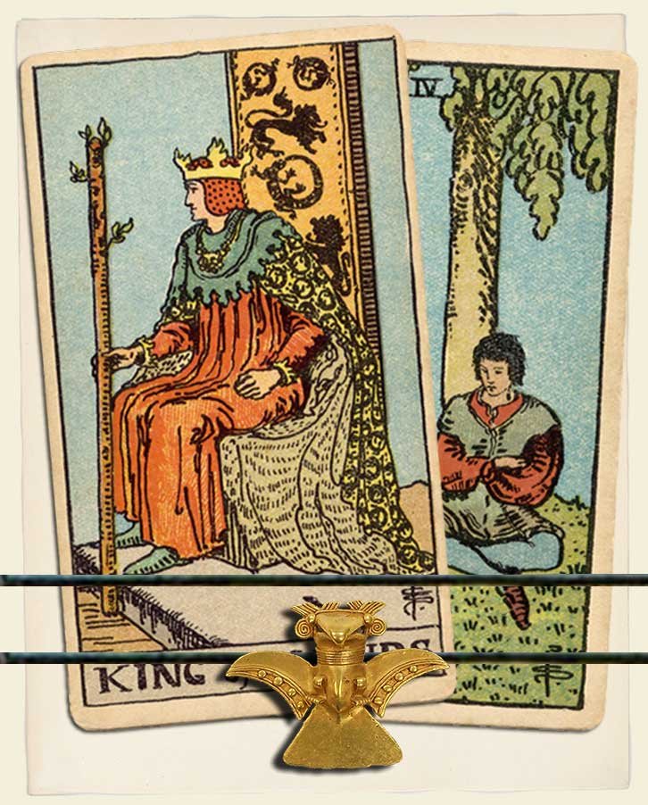 King of wands and Four of cups combination gives you a hint about a significant event in your future. It is directed by the guiding influences of (A) ENTREPRENEUR and (B) APATHY (as clarified by Four of cups). When the Four of Cups gets bored, the King of Wands gets… Well, frankly, carried away, but he is so creative and brilliant and majestic. It is quite the show. The court guards dance, the queen is standing on her head, and the jesters are keeping the palace books. Just remember that fourth card in the Four of Cups. There is something worthwhile in the way you always did things before, so don‘t throw away the baby with the bathwater, but do consider mixing things up at least a bit.
