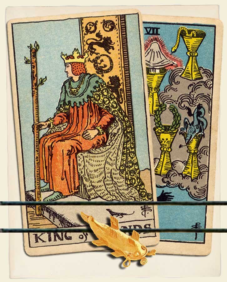King of wands and Seven of cups combination gives you a hint about a significant event in your future. It is influenced by the arcane forces of (1) entrepreneur and (2) searching for purpose. What’s the advice of this pair? The King of wands represents an adventurous, sometimes even reckless spirit that can lead to success. This energy often carries with it an element of deception or dishonesty, though. You may be trying to pull one over on people or yourself. The Seven of cups indicates that there is something wrong in your mental landscape that needs addressing before you can find true happiness and fulfillment as well as independence from others. Before taking any major steps forward, make sure you have dealt with any issues around trust and self-image.