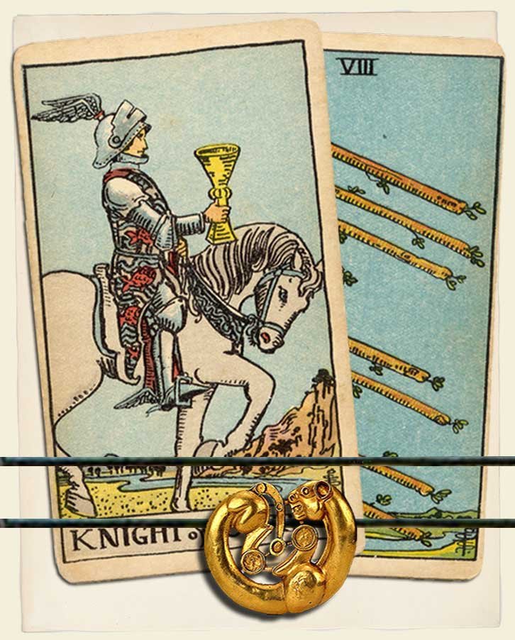 Hey, Combotarot Nation! Today we’re talking about the Knight of cups and Eight of wands combination and what it means for love and relationships.