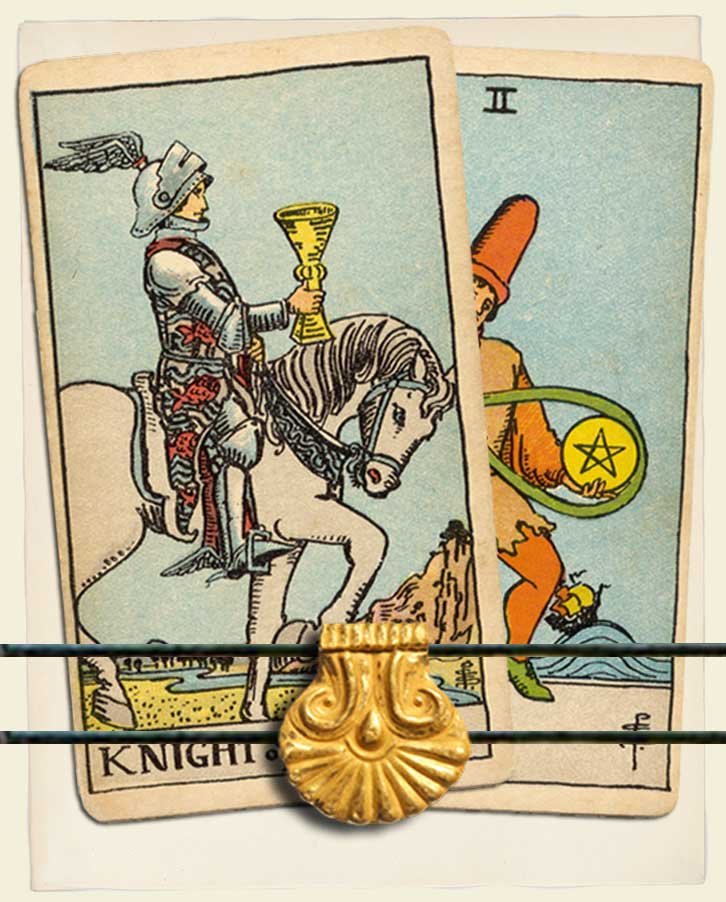 Hey, Combotarot Nation! Today we’re talking about the Knight of Cups and Two of Pentacles combination and what it means for love and relationships. This combo is considered neither good nor bad sign, but it does give us some insight into a significant event in our future directed by two guiding influences: idealism (represented by the Knight of Cups) and versatility (as clarified by Two of Pentacles).