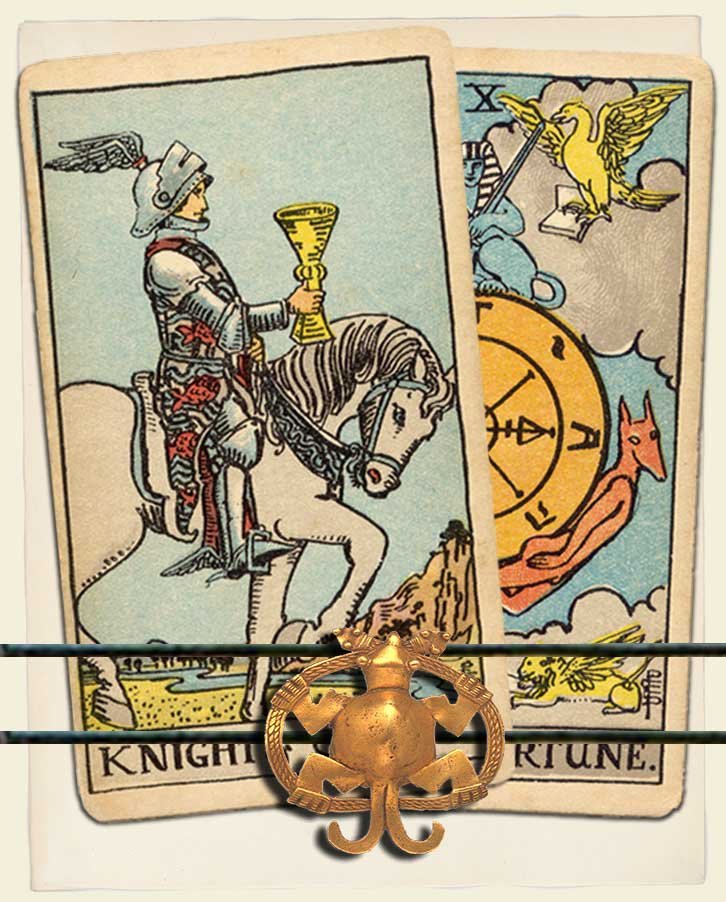 Knight of cups and Wheel of Fortune combination gives a clearer perception about your near future. It will arise from the combined effect of: (I) Romance (effect of Knight of cups) and (II) Karma (arcane effect of Wheel of Fortune). To put it differently, it indicates that the circumstances are ripe for there to be major changes in your love life. What’s the advice of this pair? The Knight of cups represents communication that comes from the heart. It can often represent an apology, so, if you believe you are owed one, it might be on the horizon. The Wheel of Fortune indicates that powerful karmic forces are at work in your life. If things haven’t been going your way, any obstacles will be removed. The Wheel of Fortune is always turning, so it’s important to take advantage of it when it’s in your favor. If you’re someone’s secret admirer, it may be a good time to speak up and make your romantic intentions known.