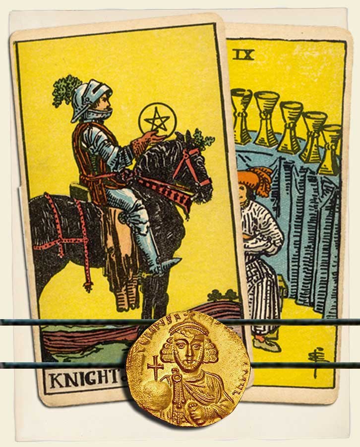 Knight of pentacles and Nine of cups together indicates that mystic tarot forces: 1) Stoic (Knight of Pentacles) and 2) Contentment (Nine of Cups) are jointly affecting you today. In other words, it means you were right to stick to your guns when you were confronted by your family. You can rely on your feeling of contentment because your decision was correct – no matter others may say. Time will show your decision was the best one to make – and the rest of the family will admit it.