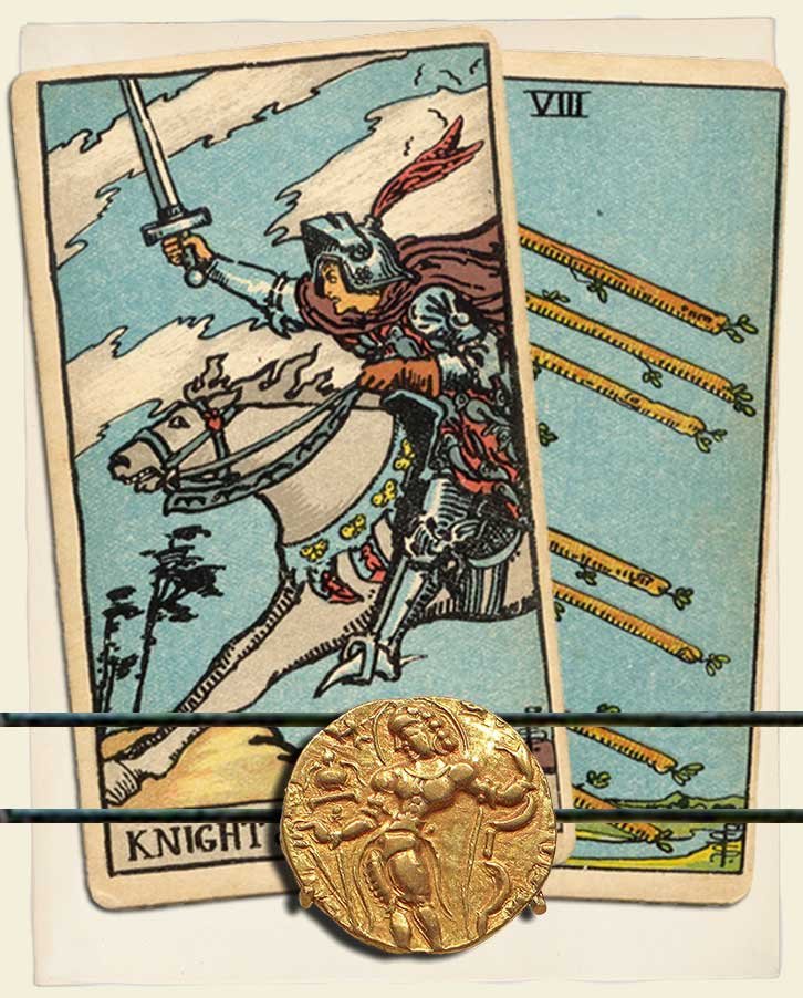 Knight of swords and Eight of wands combination means that two tarot influences: A) Impatient (Knight of swords) and B) Air Travel (Eight of wands) are influencing you at this moment. You long to be free, to step away from what you know and to take flight. Somewhere, anywhere other than where you are. Why? Because you have outgrown everything around you and everybody has noticed, but most of all you. Book that flight, and take your heart to lay in a place that will soon become meaningful. You’ve nothing to lose.