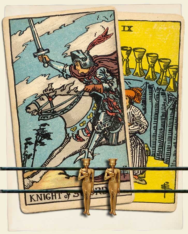 Knight of swords and Nine of cups combination is a sign that two tarot influences: 1) Intellectual and 2) Wish Come True govern your life decisions today. To put it differently, it indicates you are an intellectual person, and you know how to make your wishes come true. You will just have to do a little out of the box thinking and step out of the comfort zone you have placed yourself into. You got this, so take in that breath and stop getting in your own way.