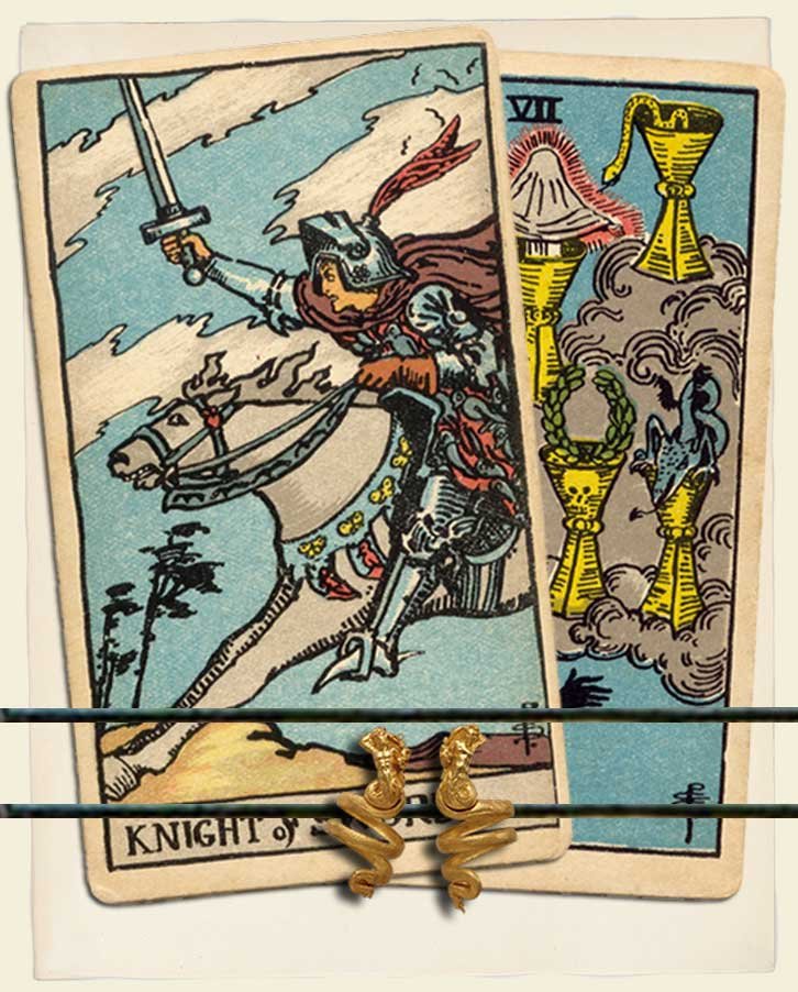 Knight of swords and Seven of cups combination is a sign that two forces: 1) Ambitious and 2) Choices have influence on you today. How to interpret this in practice? You are a bit too ambitious presently. You have a choice to take a break from your big dreams that sometimes overwhelm you. Today should be the day that you finally give your brain some time to recharge and you will be much more productive once you restart.