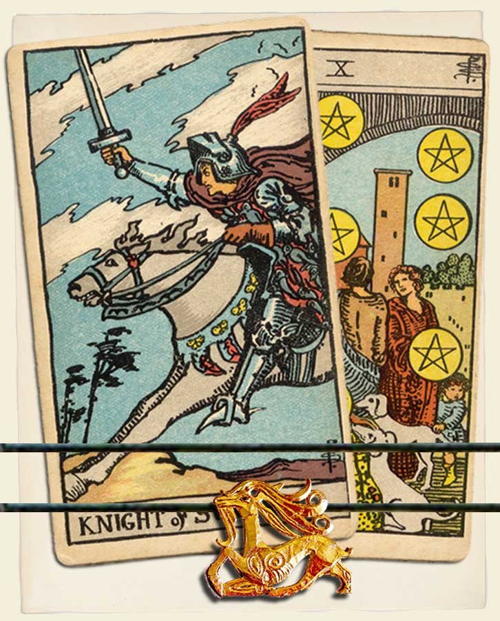 Knight of swords and Ten of pentacles combination means that two mystic forces: 1) Impatient and 2) Family are influencing you at the moment. How to interpret this tarot combination in practice? Do you feel like time is running out? Everyone feels like freezing time sometimes and feel impatient to achieve their goals. Some want to build families, some pursue their careers, and some just like to eat and sleep. You, my friend, are very ambitious and no matter which route you choose, those family members and friends you least expect will be proud of you.