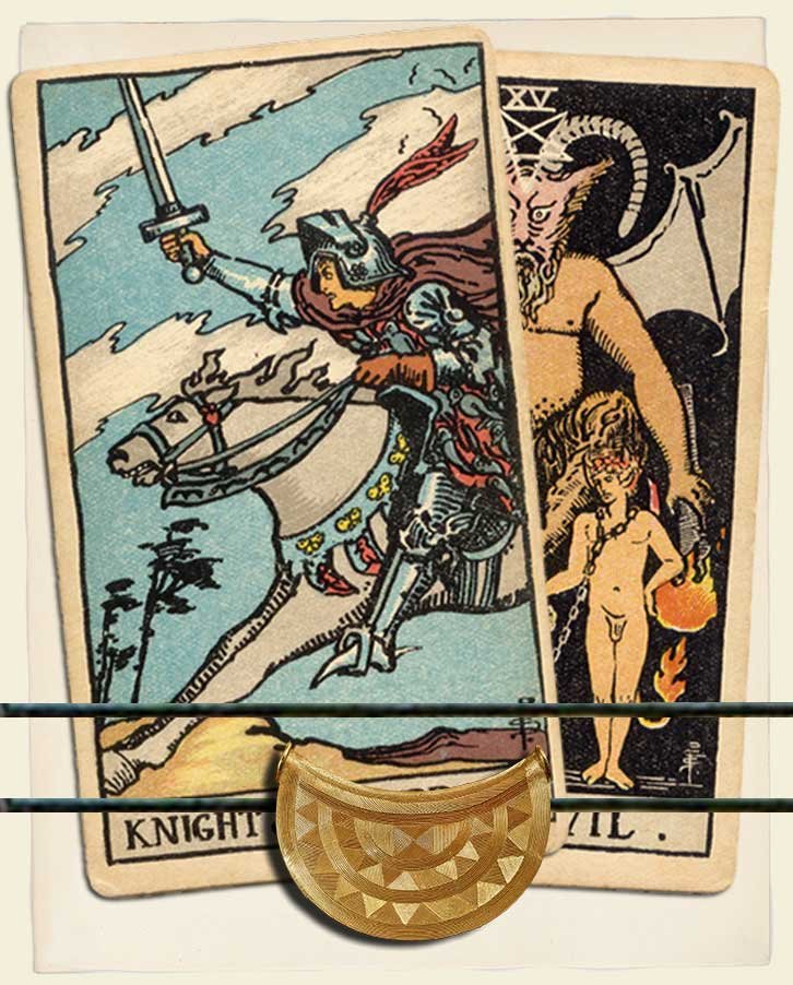 Knight of swords and The Devil combination indicates that arcane tarot forces: 1) Intellectual and 2) Addiction currently guide your decisions. What’s the advice of this pair? The Knight of swords is a fast-moving, intelligent energy that urges you to tell the truth, even when it ruffles feathers. It can be an unkind energy, so the presence of The Devil here is worrying. The Devil often leads us down a path of addiction, where even doing good things (like telling the truth) can become self-serving. When you speak a difficult truth, is it to feel righteous? Is it to put someone else down? Is it to gain power and influence? Or is it to try to resolve a difficult situation? This combination of cards is an admonition to consider your motivations when you play the role of the “brutal truth-teller.”
