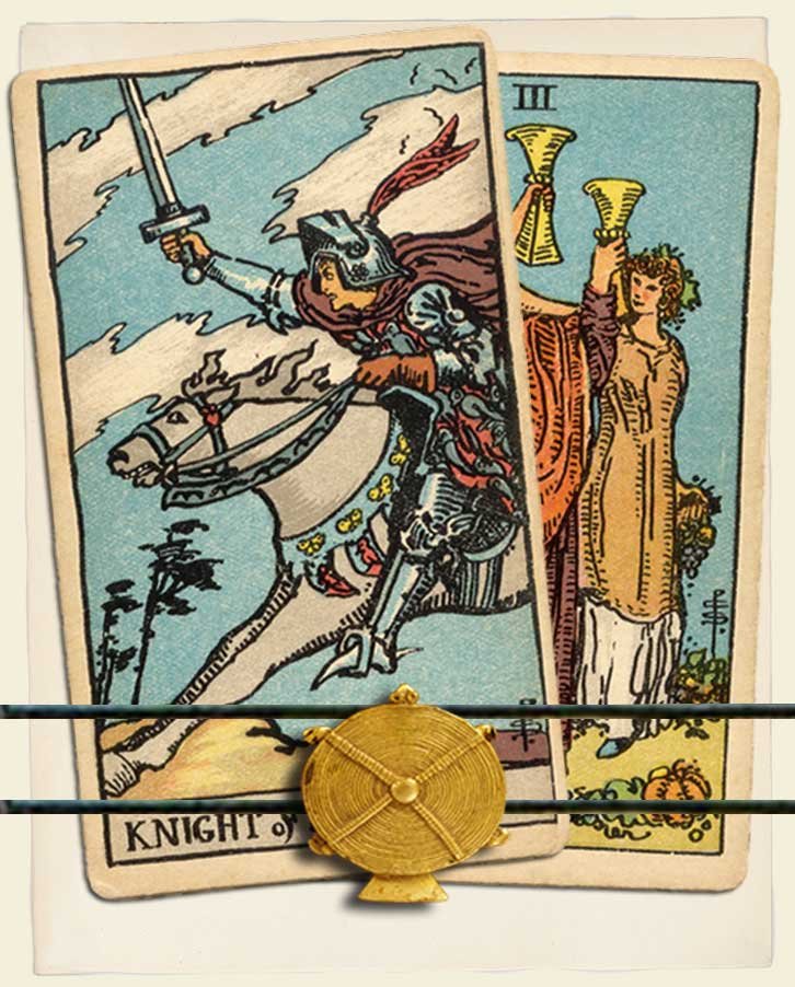 Greetings, young one. You seek wisdom on the meaning of Knight of swords and Three of cups in matters of love and relationships. Let me share my insight with you.