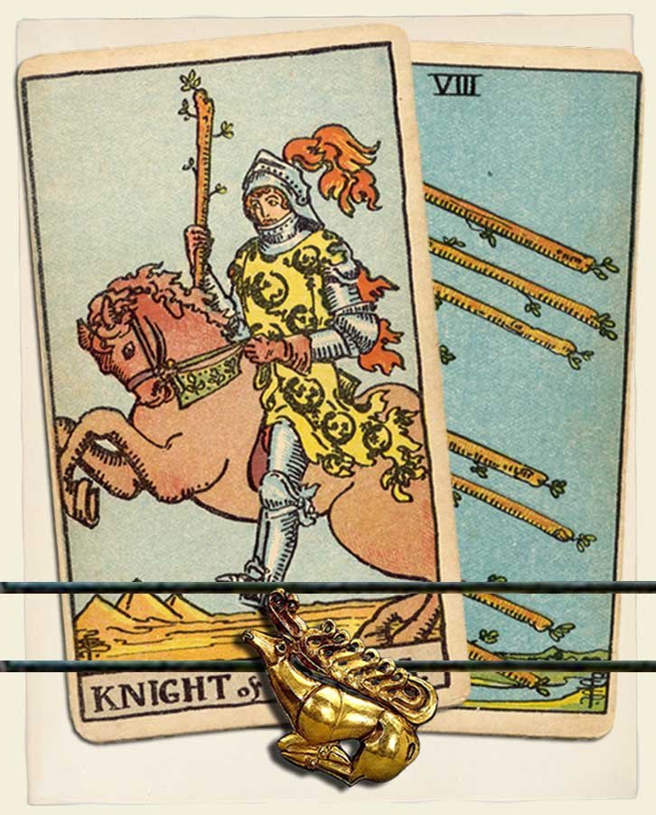 Well, it seems we have a neutral sign for love and relationships with the combination of Knight of wands and Eight of wands. But let’s break it down a bit further.