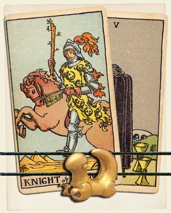 Well, darling, it seems that the Knight of Wands and Five of Cups combination is not exactly a desirable omen for love and relationships. You see, this concoction reflects an amalgamation of two opposing tarot forces – Adventure and Mourning.