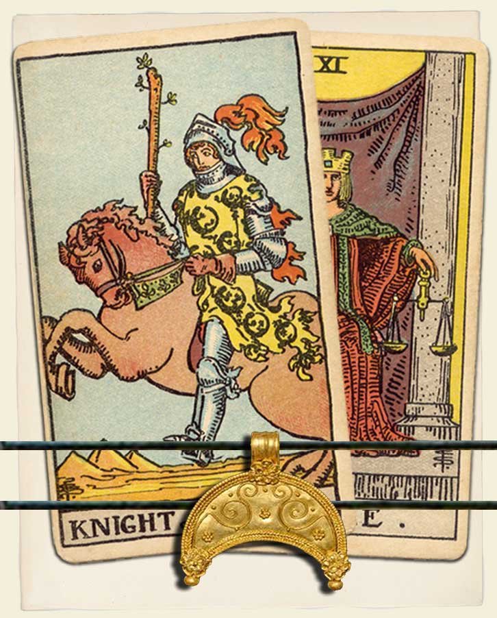 Knight of wands and Justice combination means that two mystic forces: 1) Passion (from the side of Knight of wands) and 2) Law (from the side of Justice) have influence on you today. The Knight of wands urges you to take a risk, and when you make sure to measure thrice and cut once, Justice will make sure that you get what you deserve. Do you wish to know if you deserve him? Consider whether he deserves you first. Nothing can stand in the way of your relationships if you’re both considerate, fair, and honest.