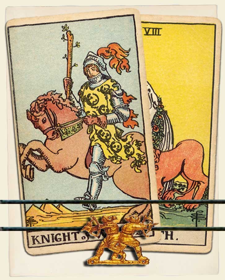 Knight of wands and Strength combination gives an insight into an event in your future. It is influenced by the arcane tarot forces of (A) IMPULSIVENESS and (B) PERSUASION. You are so attracted to the person in front of you that you don’t even dare to look into his eyes. He is aware of your interest and flirts with you even if you don’t understand it. How about setting the rules of this game? It’s time to throw wood on the fire burning inside you, let’s warm up here.
