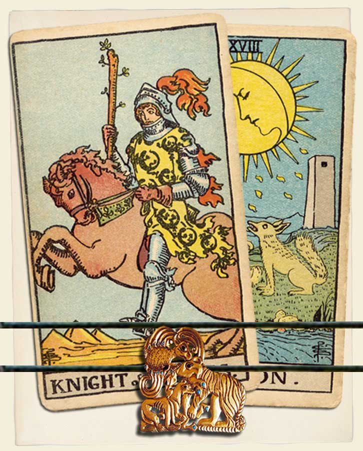 Knight of wands and The Moon combination means that two tarot effects: I) Energetic (Knight of wands) and II) Subconscious (The Moon) have influence on you at this moment. Unsure where to channel your newfound sense of energy? Close your eyes and go on the magic carpet ride of your subconscious. It will guide you in the right direction. Book that trip you have been dreaming of and commit to your promotion at work. Your mind is ready for development and change, and you are the only thing holding yourself back. Spending time under the moonlight will unlock your deeper dreams.
