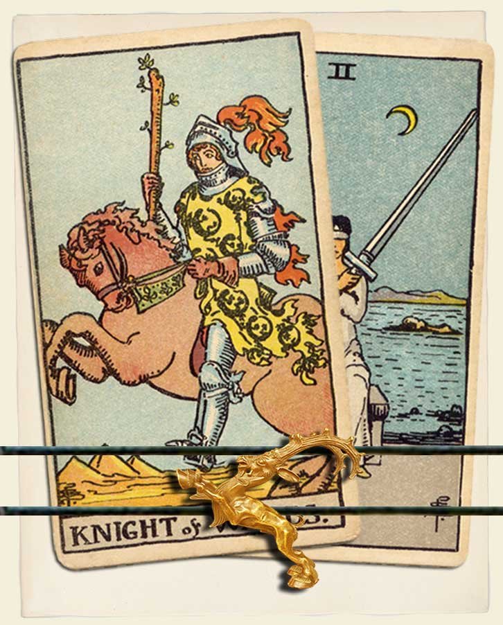 Oh my, dearie, it seems like you are in quite the predicament! The Knight of wands and Two of swords combo for love and relationships is not the most comforting sign. It shows that your future will be a result of inspired action and denial. You may have done all the hard work yourself, but someone else gave you inspiration to act. Don’t forget to acknowledge them for their influence.