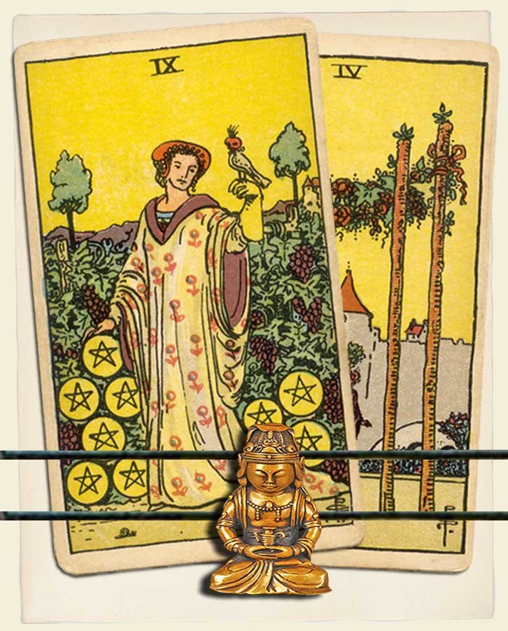 Nine of Pentacles and Four of Wands combo interpretation