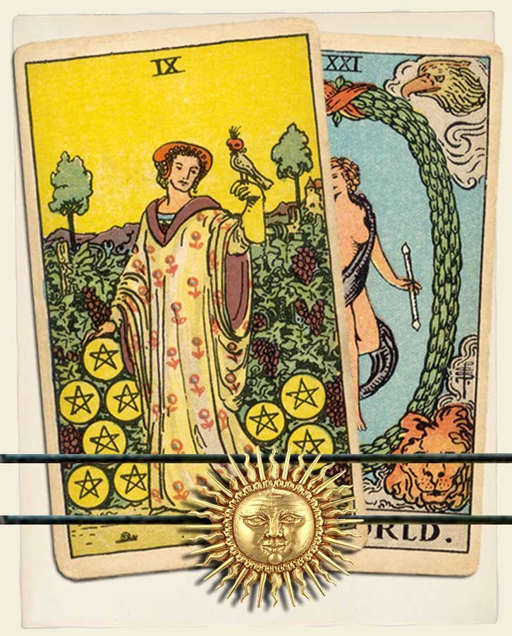 Nine of Pentacles and The World combo interpretation