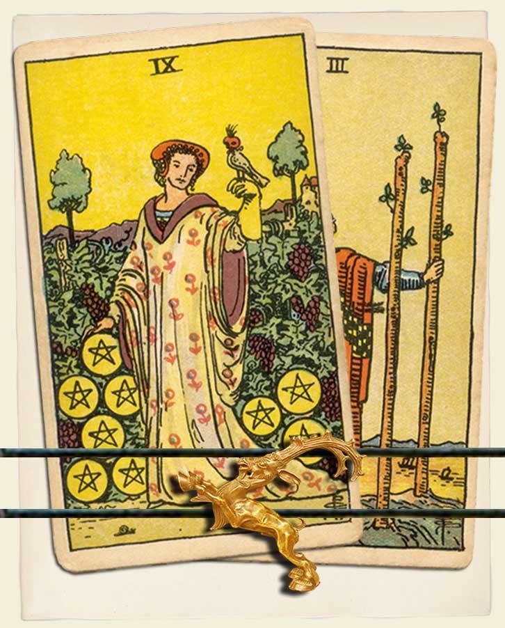 Nine of Pentacles and Three of Wands combo interpretation
