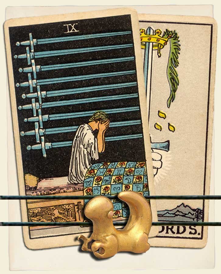 Nine of swords and Ace of swords combination gives a hint that two forces: 1) Fear (influence of Nine of swords) and 2) Clarity (influence of Ace of swords) are influencing you at the moment. What’s the advice of this pair? The Nine is sometimes called the nightmare card, and it represents intense fear or anxiety. This can be paralyzing energy that keeps people from moving forward in their lives. The presence here indicates that you may be afraid to take action on something important to you because you don’t want to deal with any negative consequences. That is understandable, but being frozen by fear isn’t going to help matters. You need clarity so your decisions will be well-informed ones. The Ace of Swords represents intelligence combined with swiftness – often described as a flash fire effect that cuts through complex issues quickly and clearly. If you have been avoiding making a decision for whatever reason, now might be the time to act decisively without worrying about what might happen if things go wrong.
