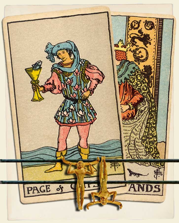 Page of cups and King of wands combination gives you intuition about a major event in your future, which will arise from the combined effect of: (I) INNOCENCE (effect of Page of cups) and (II) TAKING CONTROL (effect of King of wands). How to interpret this tarot combination in practice? Pages in the Tarot often represent youth and lack of maturity. The Page of cups is an emotional card that also carries an energy of innocence. Pages are also messengers, and the Page of cups is sometimes so inexperienced that they’re an unreliable narrator. If there is something important you need to say to someone, this isn’t the energy you should approach them in, and I think you know it. That’s why the much more confident and attractive energy of the King of wands is here. This may be overcompensating, though. The King of wands can also carry something of a false energy – he’s too charming and ego driven. Find a balance somewhere between the extremes of the Page of cups and King of wands that better represents your true intentions.