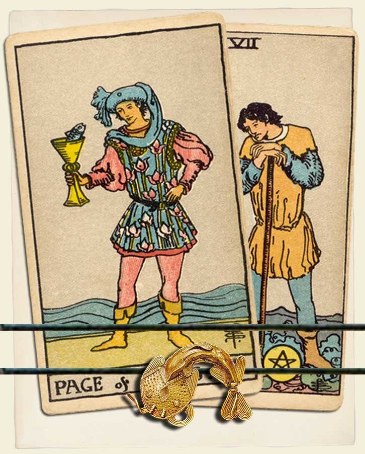 Greetings, my dear ones. You come to me seeking wisdom on the meaning of Page of cups and Seven of pentacles for love and relationships. Let us begin.